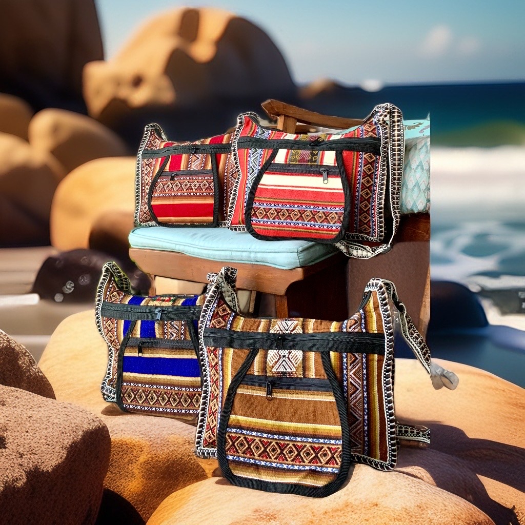 Produzido a partir de tecido tradicional artesanal do Peru com uma imensa diversidade de padrões encontrados nos tecidos dos Andes peruanos, profundamente enraizados em antigas tradições transmitidas de geração em geração ao longo de milhares de anos.