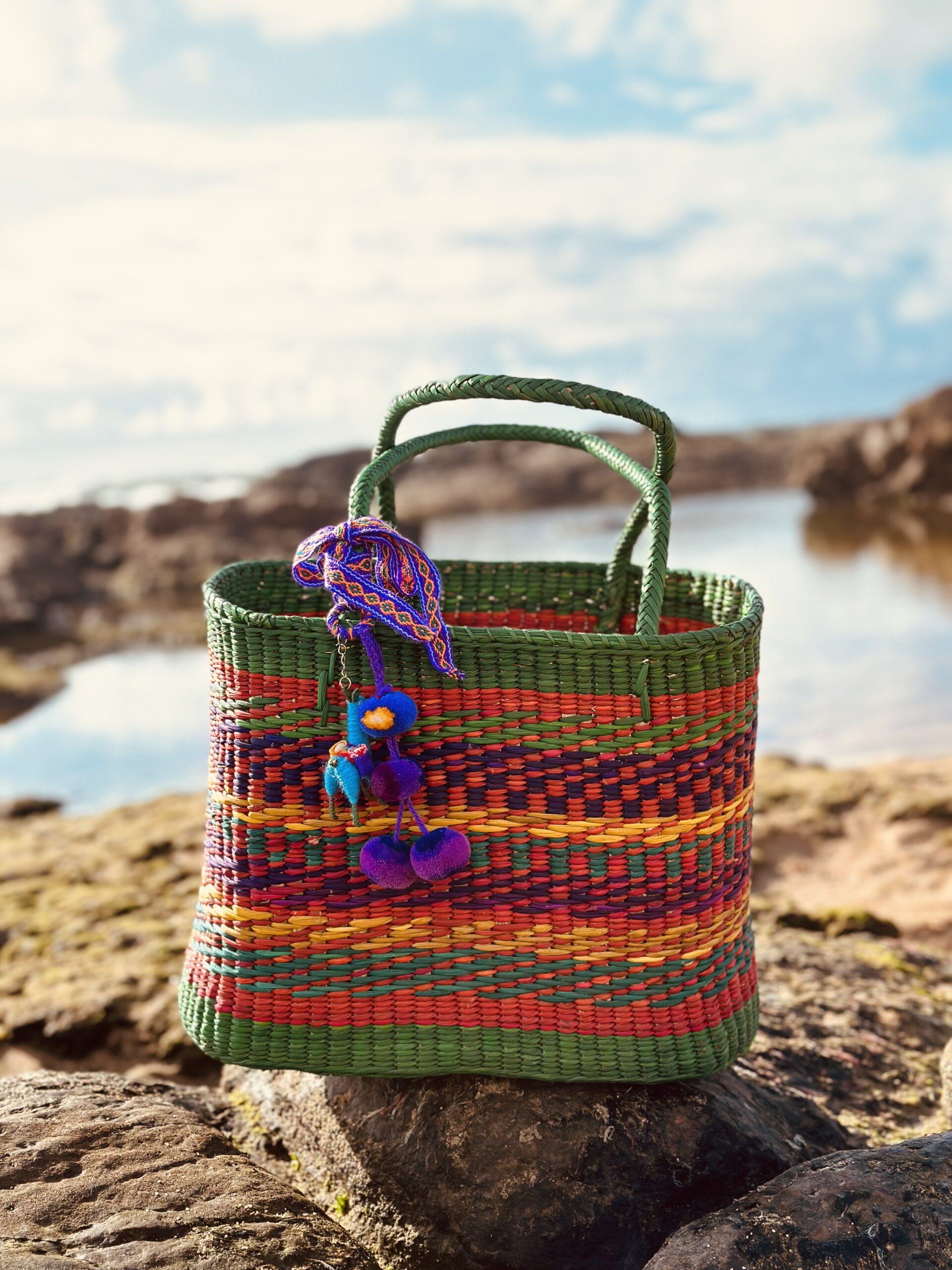 Cada bolsa é feita com palha de Junco e Palma por artesãos peruanos especializados que levam uma semana para criar cada bolsa.