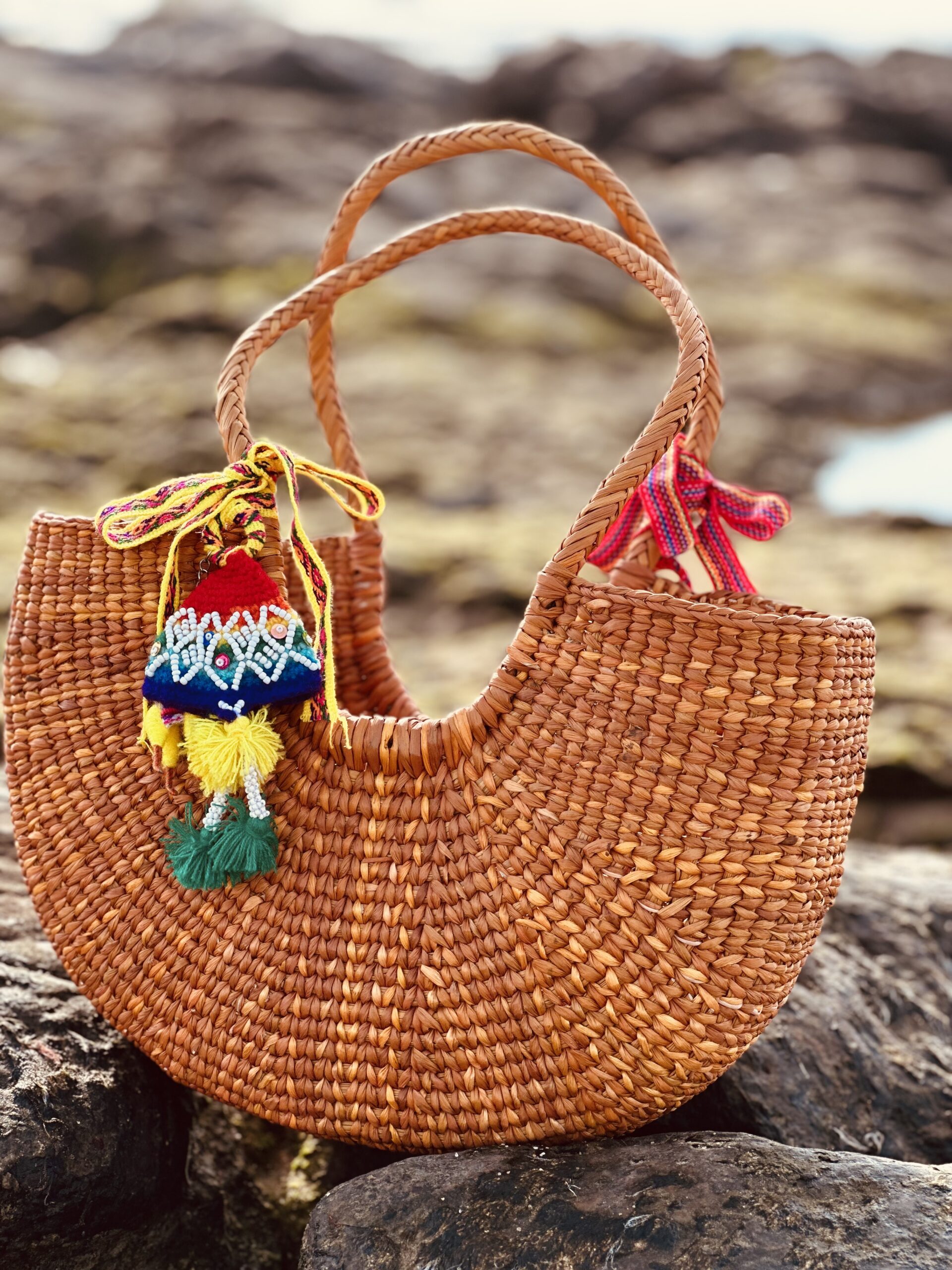 Cada bolsa é feita com palha de Junco e Palma por artesãos peruanos especializados que levam uma semana para criar cada bolsa.