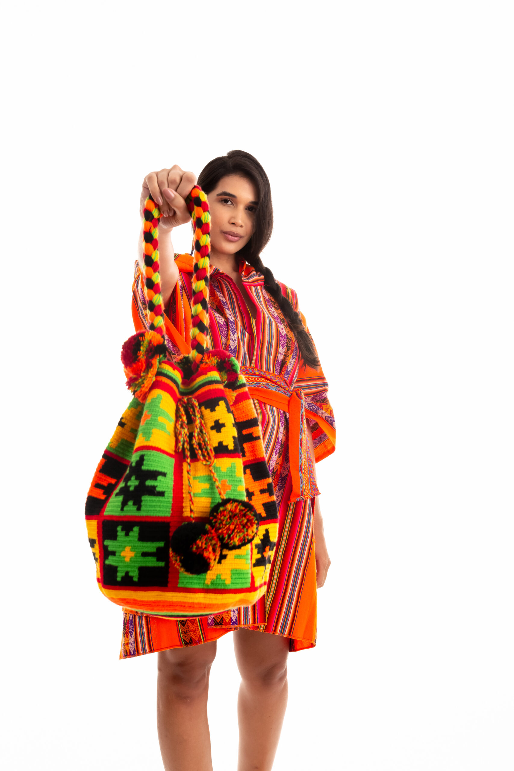 A bolsa tote wayuu apresenta um design único e colorido. Como cada bolsa é feita à mão por artesãos Wayuu, nenhuma é exatamente igual. Consequentemente, sua bolsa tote wayuu se torna um acessório único. Em tamanho grande, oferecendo bastante espaço para todos os seus itens. Além disso, a alça trançada é macia e projetada para conforto, permitindo que você a use o dia todo sem complicações.
