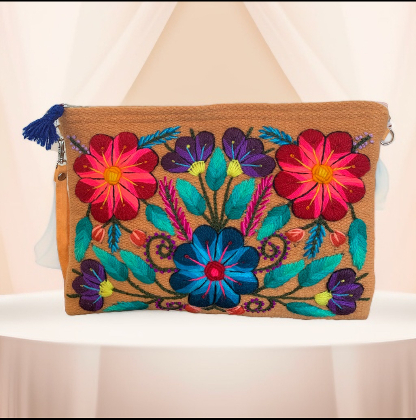 Esta bolsa é lindamente bordada por artesãos de Ayacucho – Peru, localizado nos Andes peruanos, repletos de uma grande riquesa cultural e sabedoria passadas de geração à geração. O povo andino tem um rico conhecimento sobre o uso de plantas para fins medicinais e corantes naturais para seus tecidos, lãs e Fios.