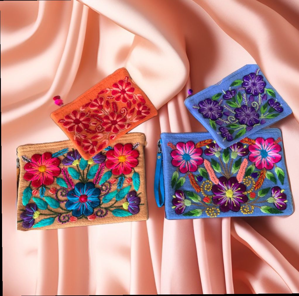 Descubra a beleza e o artesanato da arte tradicional peruano com nossa bolsa de bordado andino de alto relevo. Cada bolsa é meticulosamente feita à mão e corantes naturais para colorir tecidos e linhas em cores vibrantes feito por artesãos habilidosos, dando vida a cores e designs complexos, utilizando a técnica tradicional do bordado, conhecida pelos seus intrincados e coloridos padrões florais. Forrada com poliéster macio e durável e adornado com fios de lã de alta qualidade para bordar.