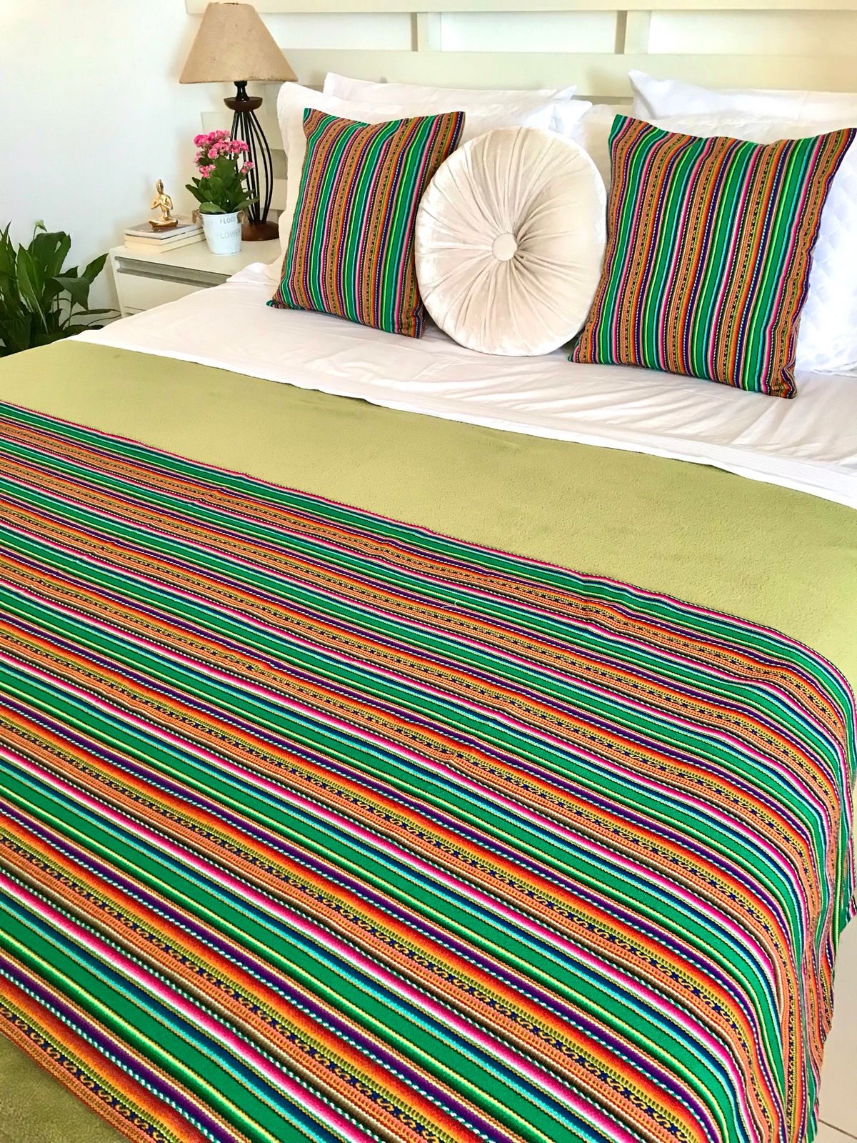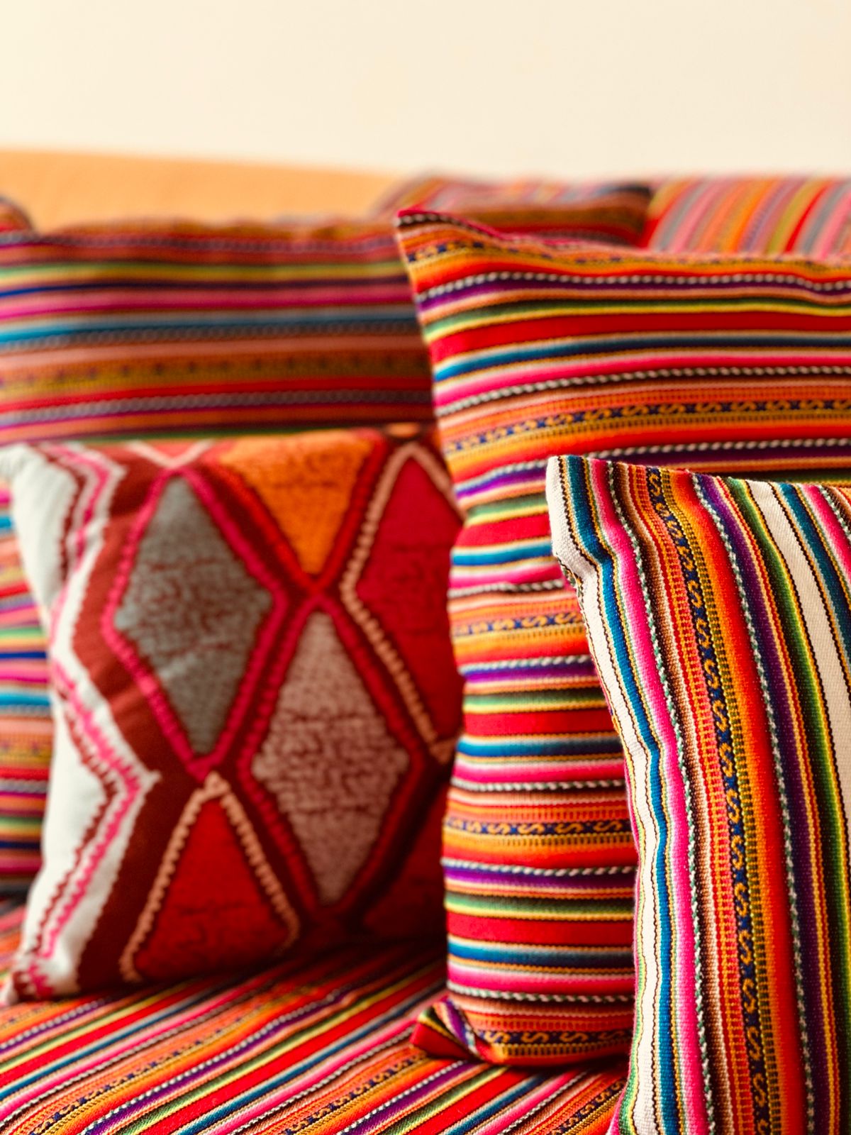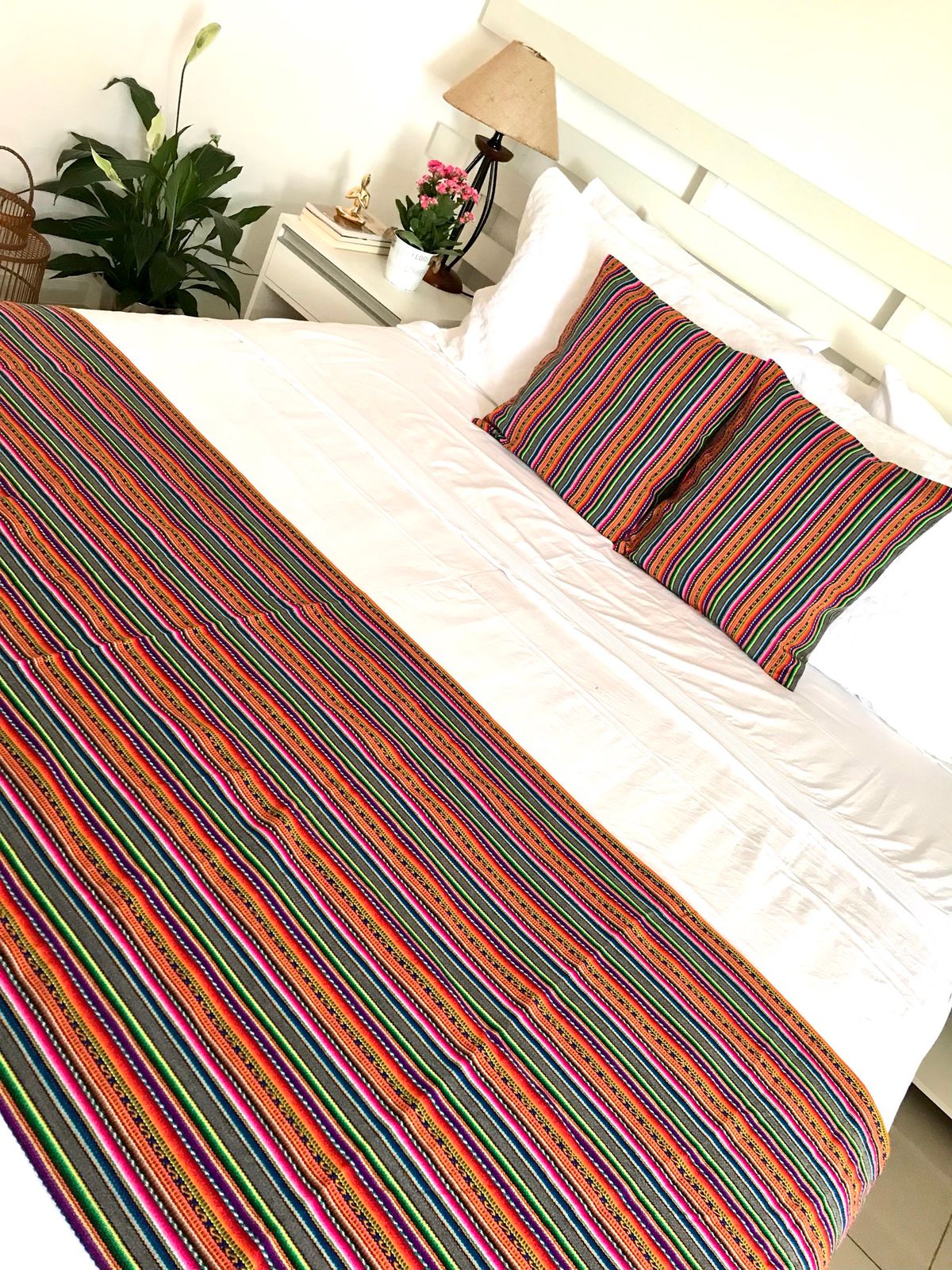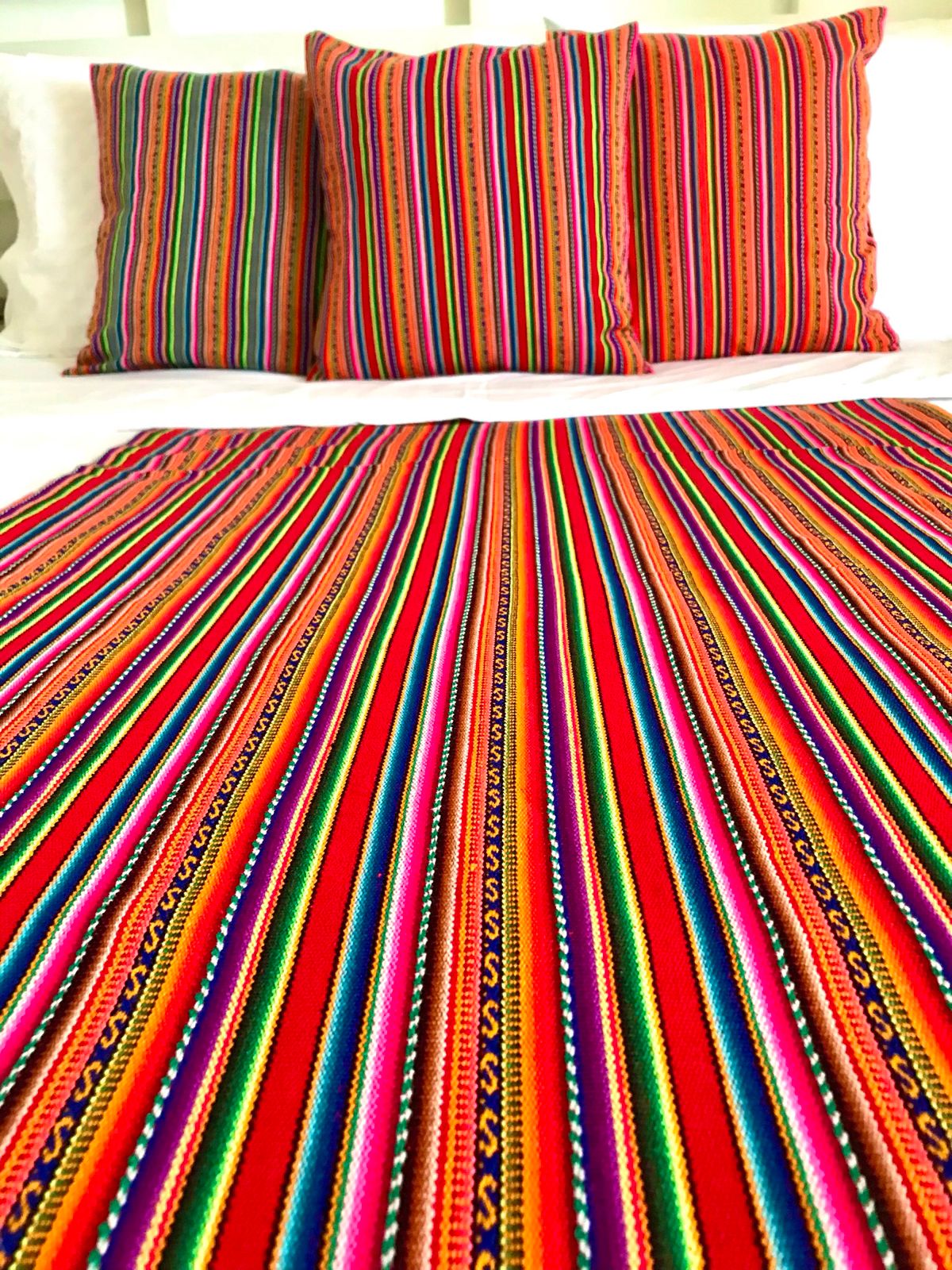 Adicione um toque boho chic à sua casa com nosso atraente conjunto de Manta e 02 Capas de Almofada com estampa peruana tradcional feitas em tecido andino peruano tradicional . As cores vibrantes e brilhantes somados aos designs intrincados inspirados nos símbolos usados pelos povos do Peru, são típicos dos Andes e farão qualquer ambiente se destacar, dando ao seu espaço um toque único e pessoal.