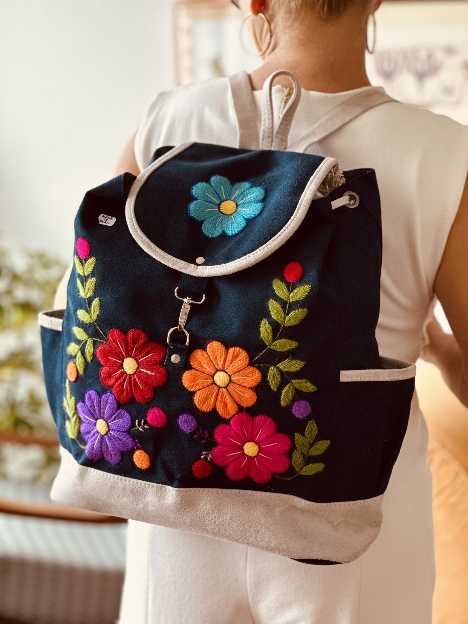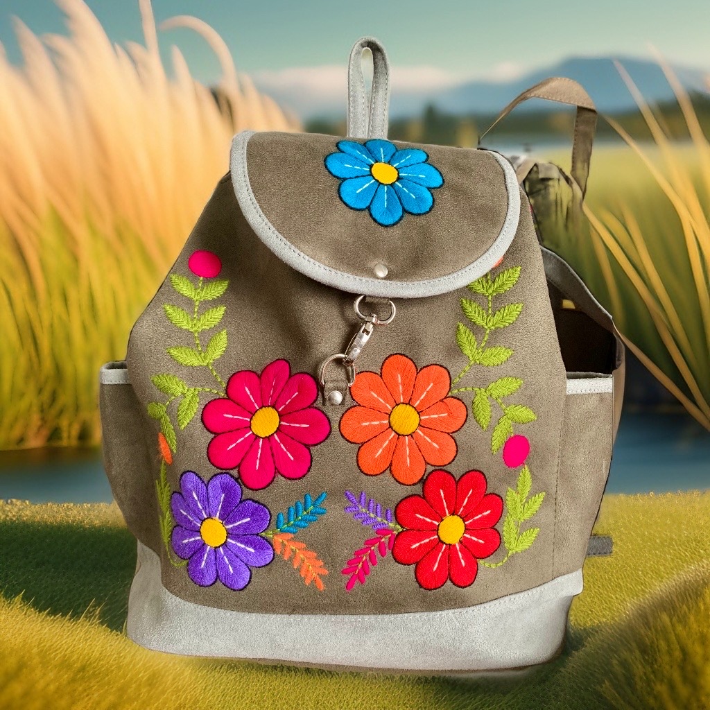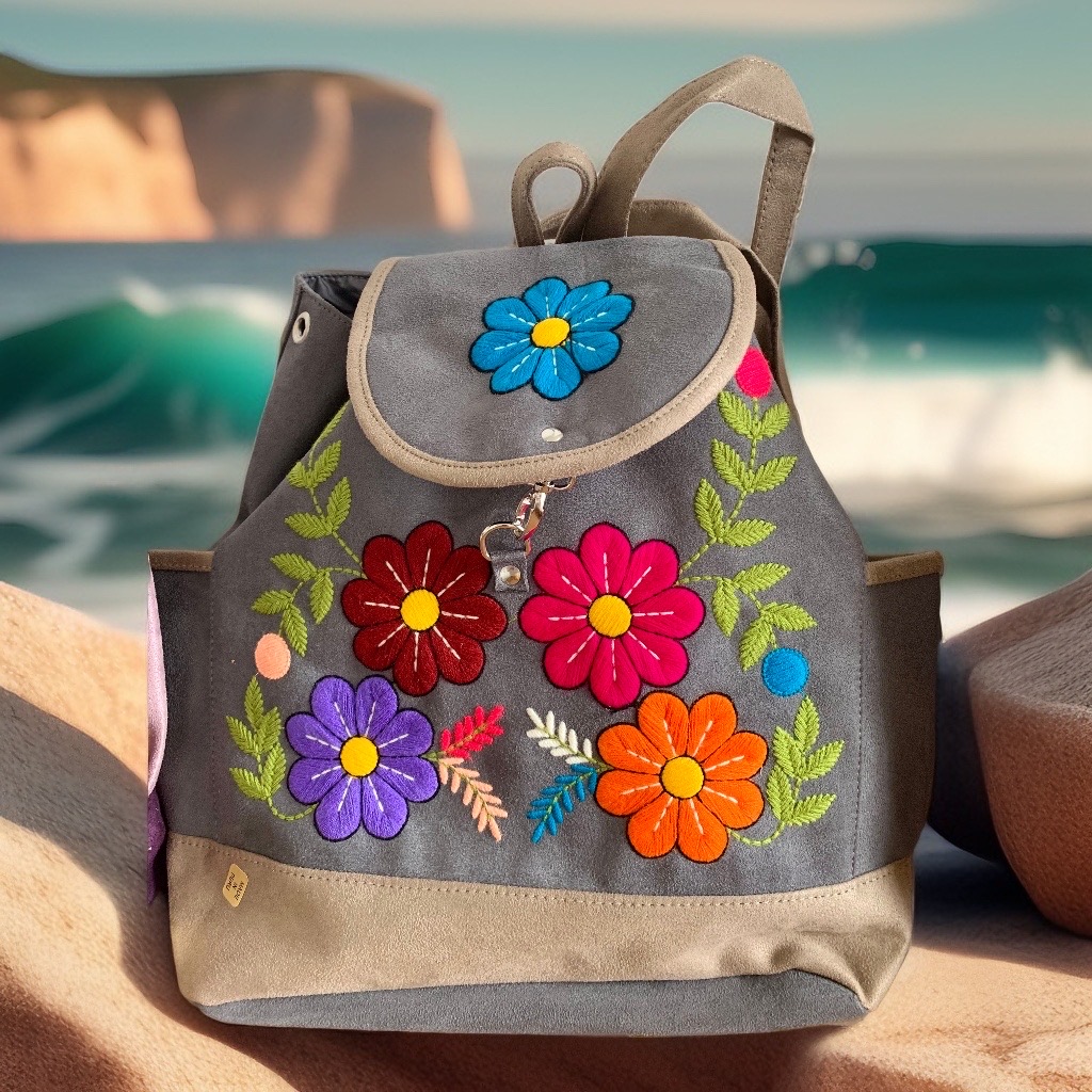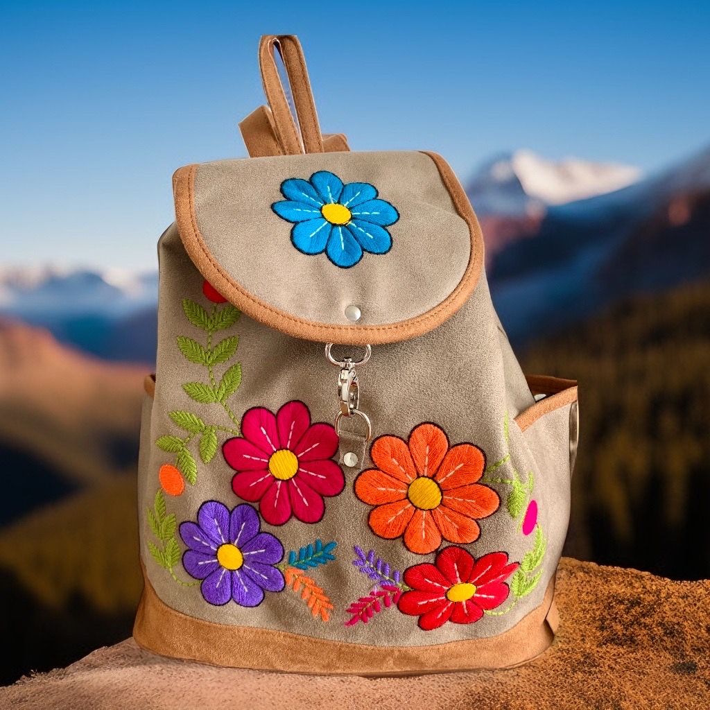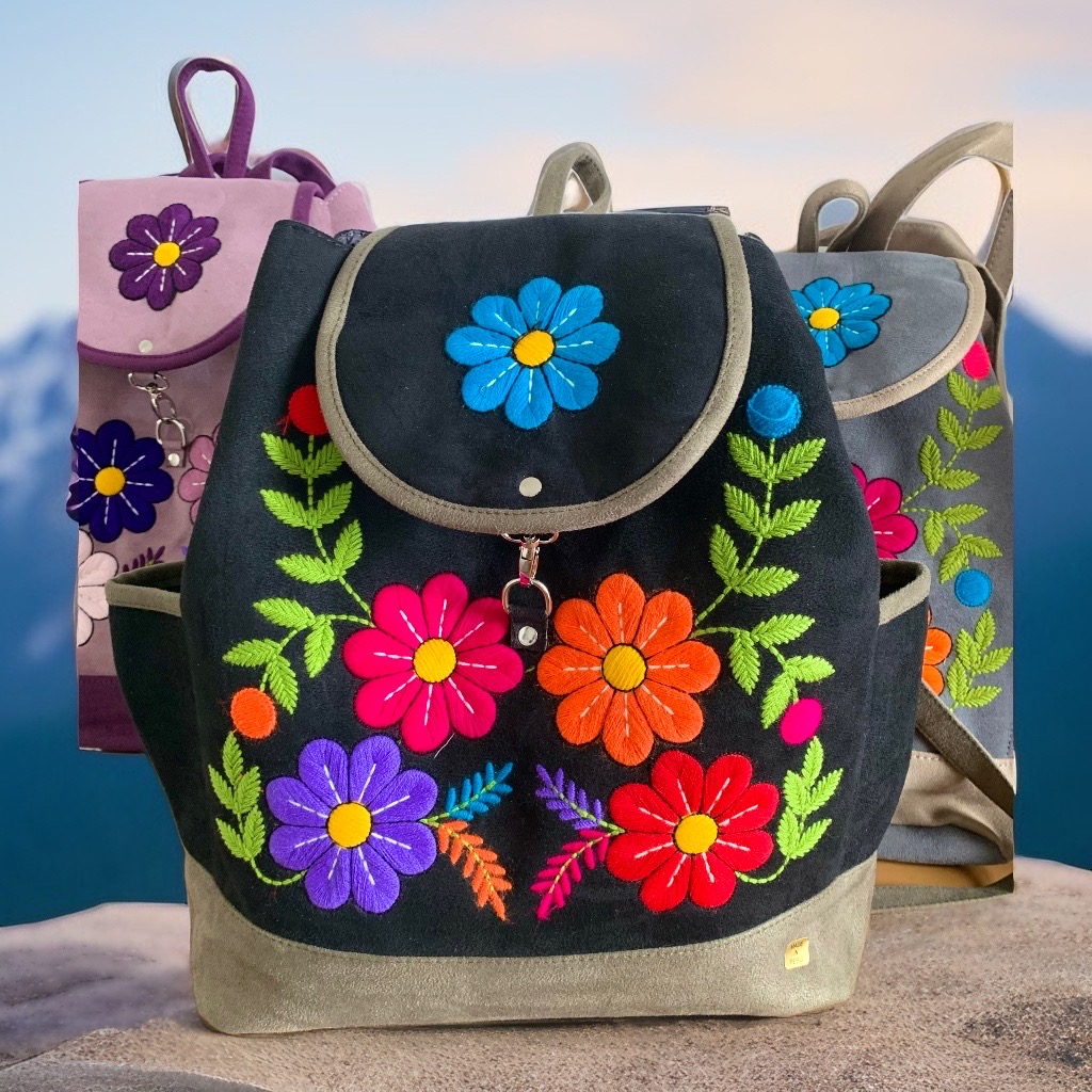 Adicione um toque de cultura e cor ao seu estilo com nossa Mochila Peruana Bordadas à mão, design tradicional peruano, inspiradas nas flores e na tradição andina. Mochila em camurça vegetal, Estas mochilas lindamente bordadas possuem um forro no seu interior, com dois bolsos laterais e um bolso interno para organização ideal, alças ajustáveis para um uso confortável. Estilo chique , multifuncional, para quem não quer apenas seguir as tendências, mas prefere seguir seu próprio estilo.